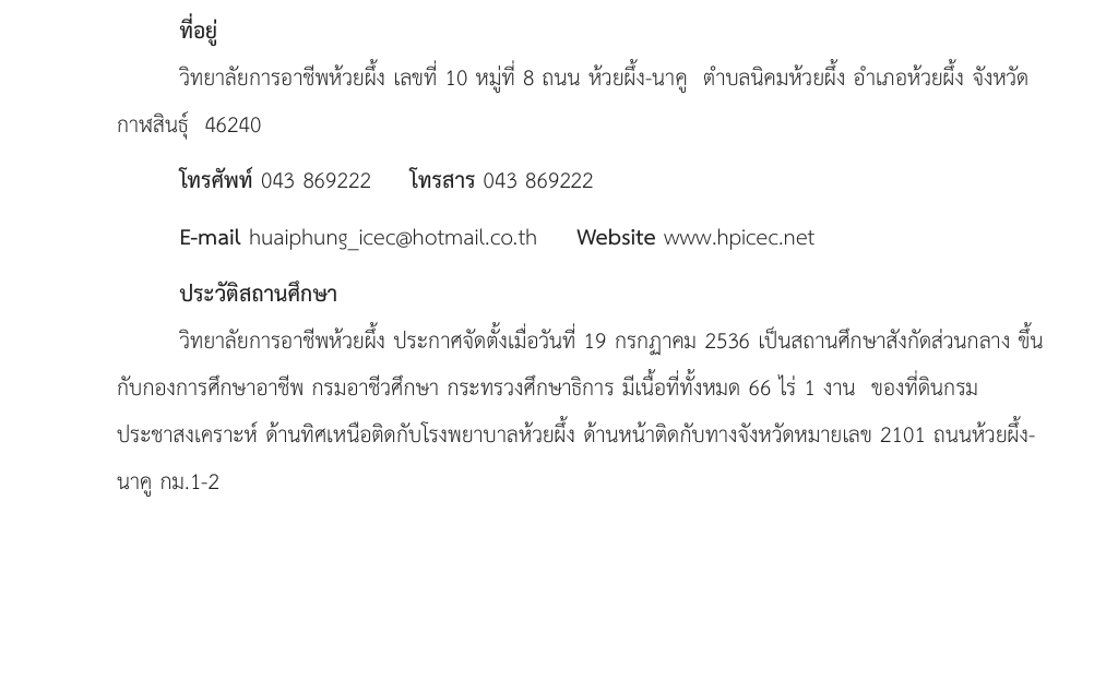 ข้อมูลทั่วไปของสถานศึกษา วิทยาลัยการอาชีพห้วยผึ้ง